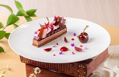 สูตรลับตำรับ Lenôtre #4 Plated Dessert จานขนมหวานสุดหรู เสิร์ฟสปันจ์เค้กช็อกโกแลตสลับเลเยอร์กับมูสช็อกโกแลต ครีมเคียร์ชชองตีลลี และครีมเชอร์รี โดยเชฟ Alexis Watrin แห่งเลอโนท ประเทศไทย