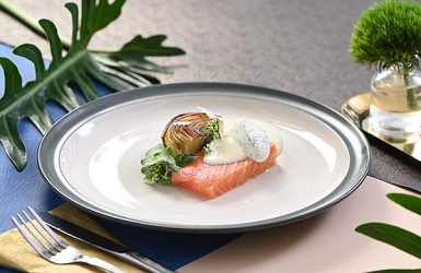แซลมอนกงฟี เสิร์ฟคู่กับซอสเบอร์บล็อง ของเชฟหยา ภัทรวดี