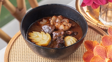 แกงมัสมั่นเนื้อแก้มวัวมารีกีมาร์ (Braised Beef Cheek Massaman Curry) สูตรโดย เชฟปิ๊ก-คณิน สินพันธ์ จากโรงแรมวินแดม แบงค็อก ควีน คอนเวนชั่น เซ็นเตอร์