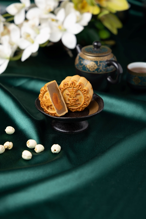 - ขนมไหว้พระจันทร์ไส้ลูกบัวไข่แดงเค็ม : ไส้ลูกบัวเนื้อเนียนละเอียด หอมละมุนจากวัตถุดิบธรรมชาติ เสริมด้วยไข่แดงเค็มชิ้นโต เพิ่มความกลมกล่อมอย่างลงตัว