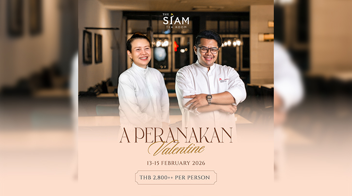 ประสบการณ์ “A Peranakan Valentine” โดยเชฟอุ้มและเชฟอ้น เปิดให้บริการเป็นพิเศษเฉพาะวันที่ 13–15 กุมภาพันธ์ 2569 เวลา 18.00–20.00 น. ในราคา 2,800++ บาทต่อท่าน พร้อมสปาร์กลิงไวน์ 1 แก้ว