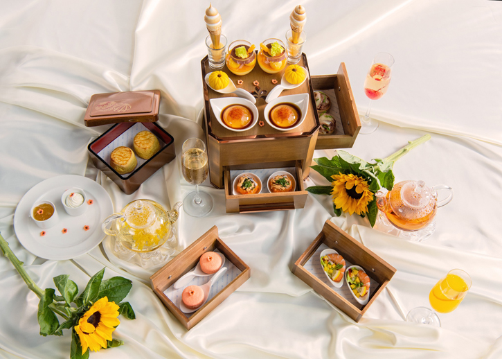 เสน่ห์แห่งสีสัน รสชาติและกลิ่นหอมที่ชวนให้นึกถึงฤดูร้อนอันสว่างไสว ได้รวมอยู่ในของหวานจำนวน 5 ชนิด อาทิ โมจิหยดน้ำกลิ่นดอกคำฝอย, เค้กมูสมะม่วง และของคาว 3 ชนิด เช่น ปูยักษ์สไปซี่, โรลอโวคาโดกับไข่กุ้ง นอกจากนั้นยังมี สโคนสไตล์คลาสสิกที่มีส่วนผสมของดอกคำฝอย ทาคอทเทจครีม และแยมโฮมเมดแสนอร่อย