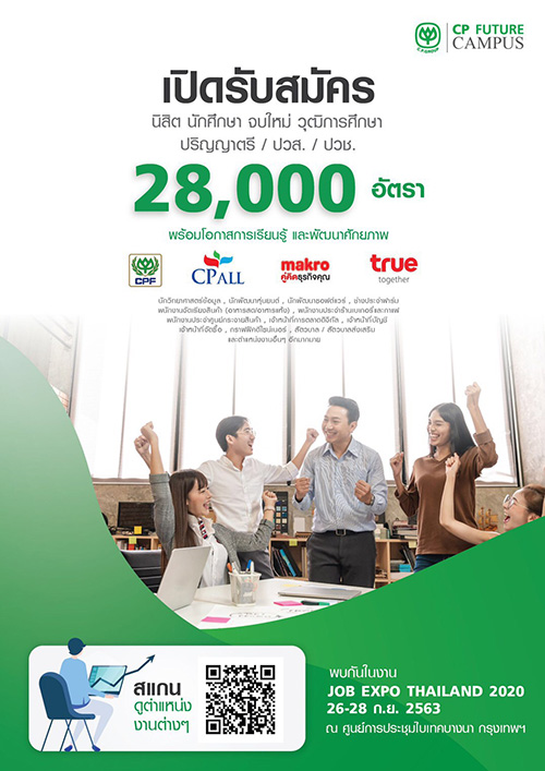 ทั้งนี้ ผู้ที่สนใจหางานทำมาร่วมงานและแวะที่บูธซีพีเอฟได้ตั้งแต่วันนี้ -28 กันยายน 2563 ตั้งแต่เวลา 10.00-20.00 น. ที่ฮอลล์ EH 98 บูธที่ D46-47