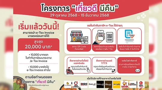 โออิชิ ร่วมโครงการ เที่ยวดี มีคืน 2568 พร้อมมอบสิทธิลดหย่อนภาษีฯ สูงสุด 20,000 บาท* วันนี้ถึง 15 ธันวาคมนี้ เท่านั้น