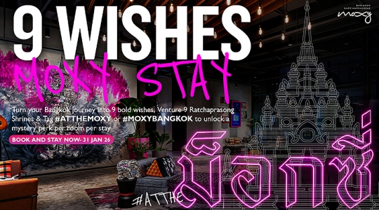 ม็อกซี่ แบงคอก ราชประสงค์ โรงแรมม็อกซี่แห่งแรกในประเทศไทย และใหญ่ที่สุดในภูมิภาคเอเชียแปซิฟิก ชวนนักเดินทางสัมผัสเสน่ห์แห่งวัฒนธรรมไทยใจกลางกรุงเทพฯ ผ่านแพ็กเกจห้องพักสุดพิเศษ “9 Wishes, Moxy Stay”