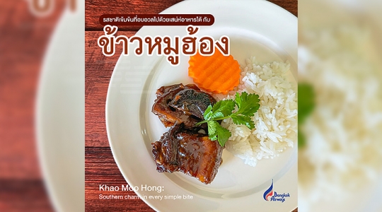 บริษัท การบินกรุงเทพ จำกัด (มหาชน) หรือสายการบินบางกอกแอร์เวย์ส เอาใจคนรักอาหารใต้กับเมนูพิเศษ “ข้าวหมูฮ้อง” อาหารพื้นเมือง ที่สะท้อนถึงความเรียบง่าย