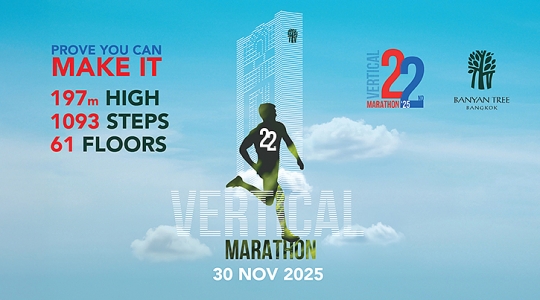 เตรียมพร้อมสำหรับความท้าทายที่ไม่เหมือนใคร กับการกลับมาอีกครั้งของกิจกรรม "วิ่งมาราธอนแนวตั้งการกุศล ครั้งที่ 22" ณ โรงแรมบันยันทรี กรุงเทพ ซึ่งจะจัดขึ้นในวันอาทิตย์ที่ 30 พฤศจิกายน 2568 ตั้งแต่เวลา 06.00 - 12.00 น.