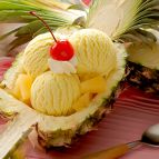 สับปะรดมีรสเปรี้ยวหวานนำมาผสมกับกะทิ นมสด เพิ่มความหวานตามชอบ แช่ในช่องแช่แข็ง ตักเป็นลูกใส่ถ้วยเพิ่มเครื่องเคียง เช่น สับปะรดเชื่อม เชอร์รี่เชื่อม และวิปครีมเย็นๆ แค่นี้ก็ฟิน   ส่วนผสม เนื้อสับปะร...